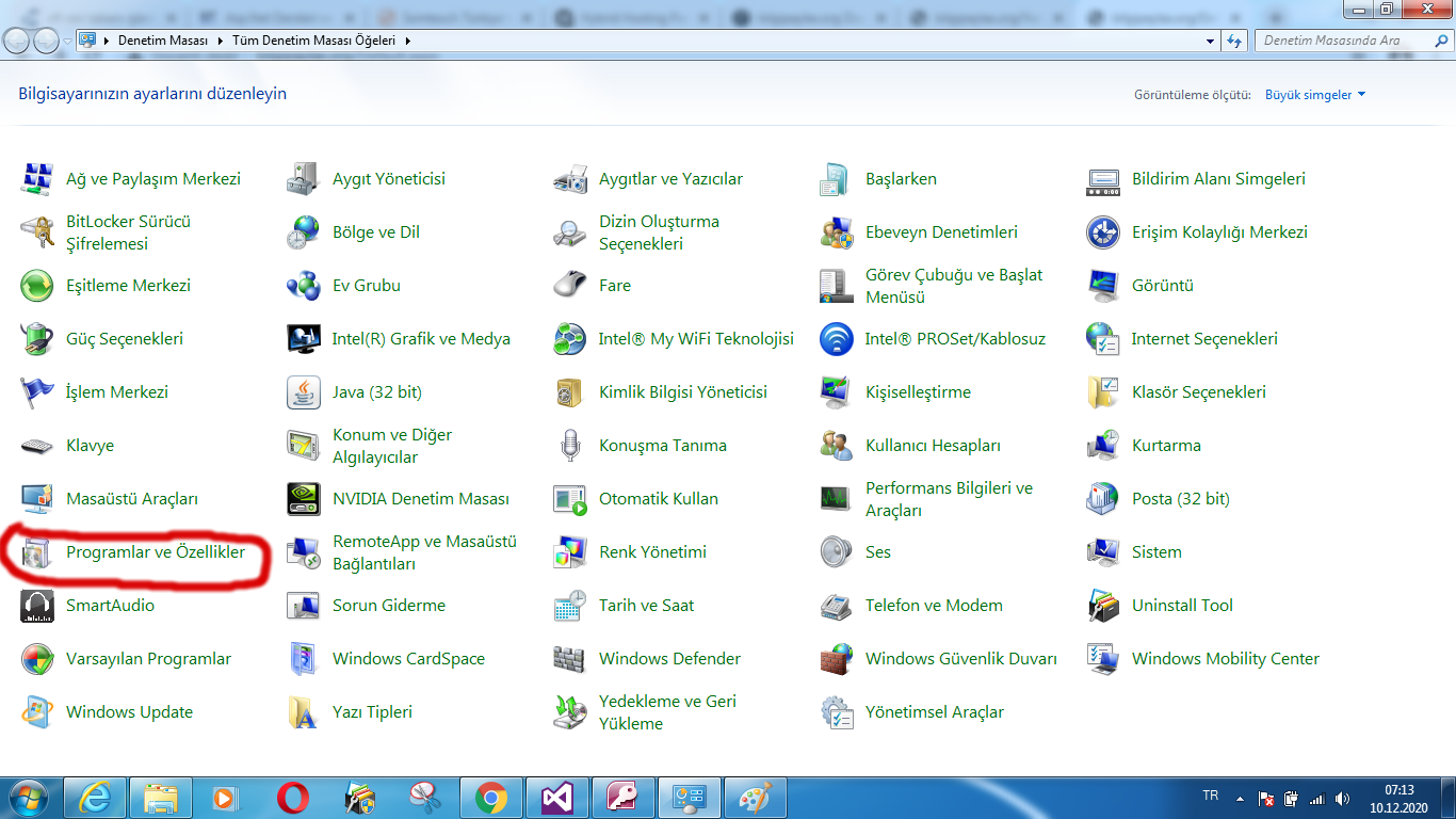 Önce Denetim Masasından Programlar ve Özellikler seçeneğine tıklayacağız.