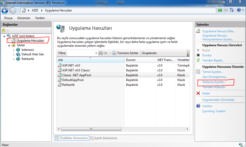 Uygulamanın kök dizinin olduğu klasörüre yazma izni verilmelidir. "İzinleri Düzenle" seçeniğinden bunu yapmayı unutmayalım.
